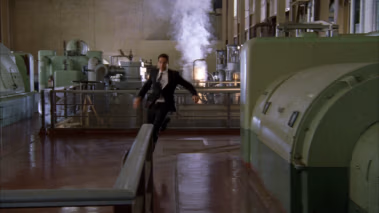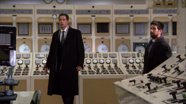 Casey and Morgan arrive at a door in the desert. It is unknown where the door in actually located. It is clear that CGI was used to build the background. It has been verified that the whole scene was filmed at the AES Redondo Beach power plant. The same place that served at the Volkoff Headquarters in Russia. Interesting to me is the use of a old Hewlett-Packard test instrument in the scene.